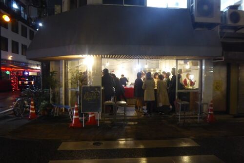 レギュームとは、野菜のこと。 雨にもかかわらず賑わっている。 メニュウ。500円x5の回数券を購入する。ドリンクはキャッシュオン。いつもの常連さん5人と同席させていただいてシェアした。 白ワインと前菜盛り合わせ。左下はキクイモ、右はローストビ…
