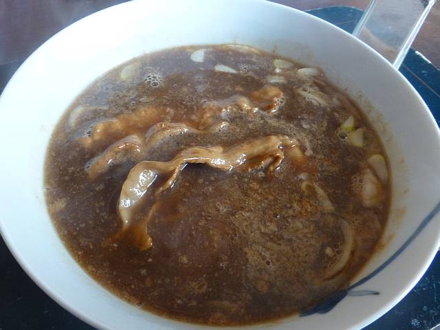 豚スライスだけ追加してディフォで作成。色の濃さからくどそうに見えるが飲んでみるとむしろあっさり感がある。見た目淺月、味冨士屋で岡山のラーメンによく似ている。